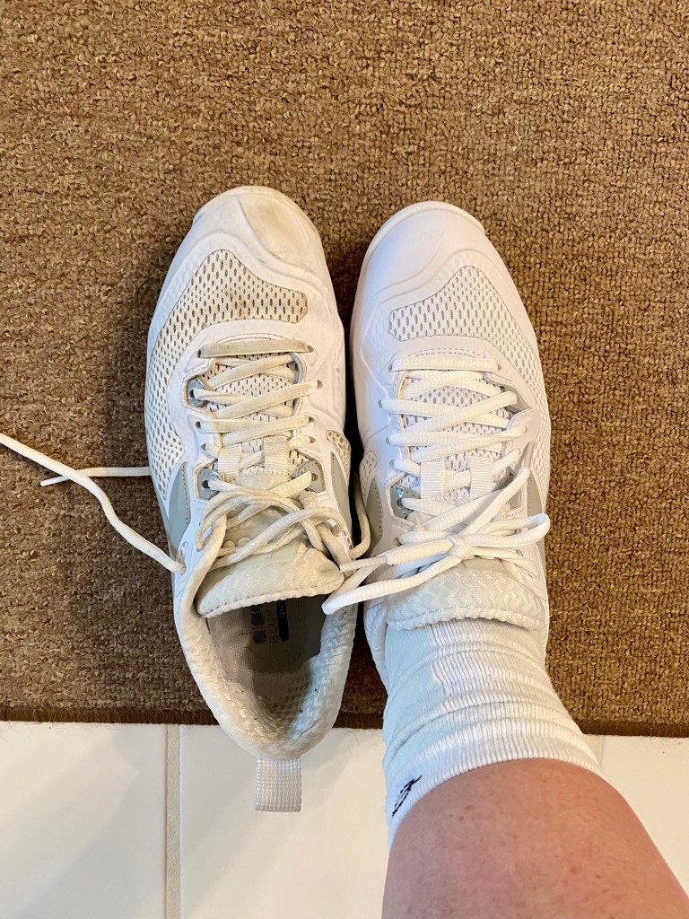 So, despite the fact that these shoes are just now feeling really nice to play in — no pinches or pulls or movement inhibition — I suddenly have to give them up for a super stiff new pair. Why? Because the old ones are no longer safe. Without proper traction, I could slip or slide on the court, injuring a muscle or turning a knee or ankle.